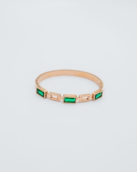 Step into sophistication with our magnificent Eva bracelet! This beauty boasts a a chain link pattern interspersed with rectangular emerald green stones. With a secure click-button clasp, it’s a cuff that adds panache solo or jazzes up your wrist party when stacked with other dazzling accessories. Flaunt your style, stack it up, and seize the spotlight!