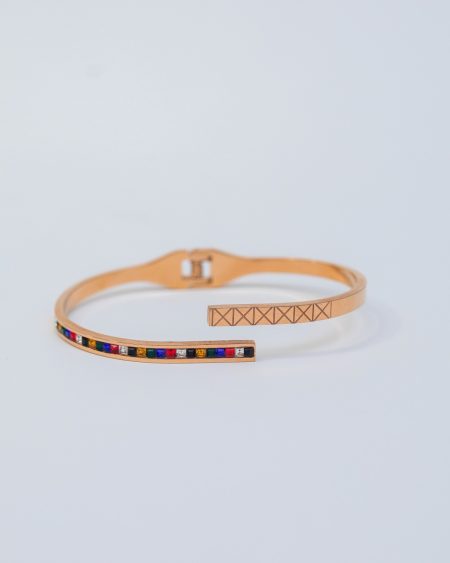 ₹1,990.00Original price was: ₹1,990.00.₹550.00Current price is: ₹550.00.Our Alice bracelet looks like it’s straight from Alice’s wonderland. At one end of this enchanted bracelet, a treasure trove of vibrant, lively stones awaits. It’s a riot of colors, a kaleidoscope of hues that would make even the Mad Hatter jealous! On the other end, a mesmerizing display of engraved abstract patterns.