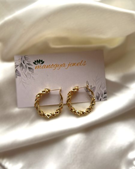 ₹1,050.00Original price was: ₹1,050.00.₹590.00Current price is: ₹590.00.Meet your new go-to statement piece: the Amy Twisted Gold Hoop Earrings. Crafted for those who love their sparkle bold and effortless, these anti-tarnish beauties feature a mesmerizing spiral of high-shine, faceted textures that catch light from every angle. It’s like radiance in every move. Each curve is a celebration of modern glamour — bold, dynamic, and impossible to ignore. Whether paired with a sleek evening dress or elevating your everyday essentials, these hoops promise to turn heads while staying brilliantly polished.