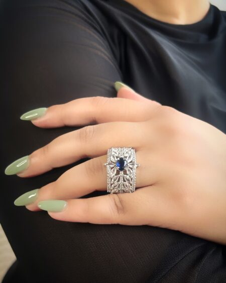 ₹950.00Original price was: ₹950.00.₹450.00Current price is: ₹450.00.Channel your inner Carrie Bradshaw with this dazzling Sapphire Blue Cocktail Ring—a bold statement piece that wouldn’t look out of place on the streets of Manhattan or Mumbai. Set on a luxe silver-tone base, the oval-cut sapphire stone gleams with old-world glamour, framed by a halo of shimmering CZ stones that capture light from every angle. Whether you’re pairing it with stilettos and a slip dress or dressing up for your coffee run, this is the kind of statement ring for women that turns everyday moments into fashion moments. A must-have for lovers of luxury fashion jewellery and Sex and the City-style glamour.