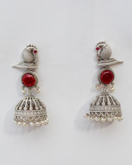 ₹1,540.00Original price was: ₹1,540.00.₹450.00Current price is: ₹450.00.Our Jiyanshi earrings are perfect for all the jhumka lovers who are obsessed with adorning traditional indian style jewellery every day but want to keep it more subtle. At the heart of the Jiyanshi Earrings is a beautifully carved bird, perched gracefully at the top while a small jhumki dangles, bringing the quintessential essence of jhumkas to these earrings. A lustrous red Monalisa stone, delicately placed between the top stud and the jhumki adds a dash of color to this resplendent creation.
