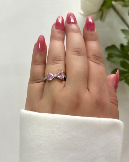 Add a sweet touch of sparkle to your everyday look with our Verona Pink Bow CZ Ring. Designed for women who love to stay on-trend without compromising on quality, this dainty ring features two blush pink teardrop stones set in a delicate bow shape, accented with micro-pavé crystals for extra brilliance. Crafted from premium, anti-tarnish, waterproof stainless steel, it offers the perfect blend of elegance and durability—so you can flaunt it every day without worry. Whether you’re dressing up for brunch or accessorizing your office wear, this charming ring brings just the right pop of color and shine.