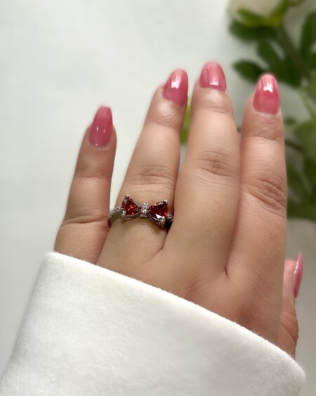 ₹800.00Original price was: ₹800.00.₹450.00Current price is: ₹450.00.Turn heads with the Verona Red Bow Ring, a dazzling piece that blends playful charm with timeless elegance. Featuring twin heart-cut ruby red CZ stones shaped like a bow and accented with micro-pave diamonds on a sleek silver-plated band, this statement ring delivers high-end designer vibes at an affordable price. Crafted to be anti-tarnish and waterproof, it’s perfect for everyday glam or date night sparkle. Whether you’re styling it with a minimal outfit or stacking it with dainty rings, this beauty is built to elevate your jewellery game without breaking the bank.