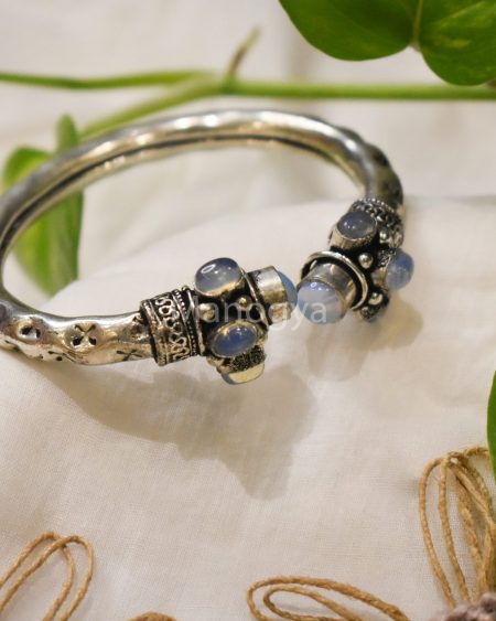 This beautiful silver oxidised bracelet is studded with blue moonstone that just exudes a magical shine.