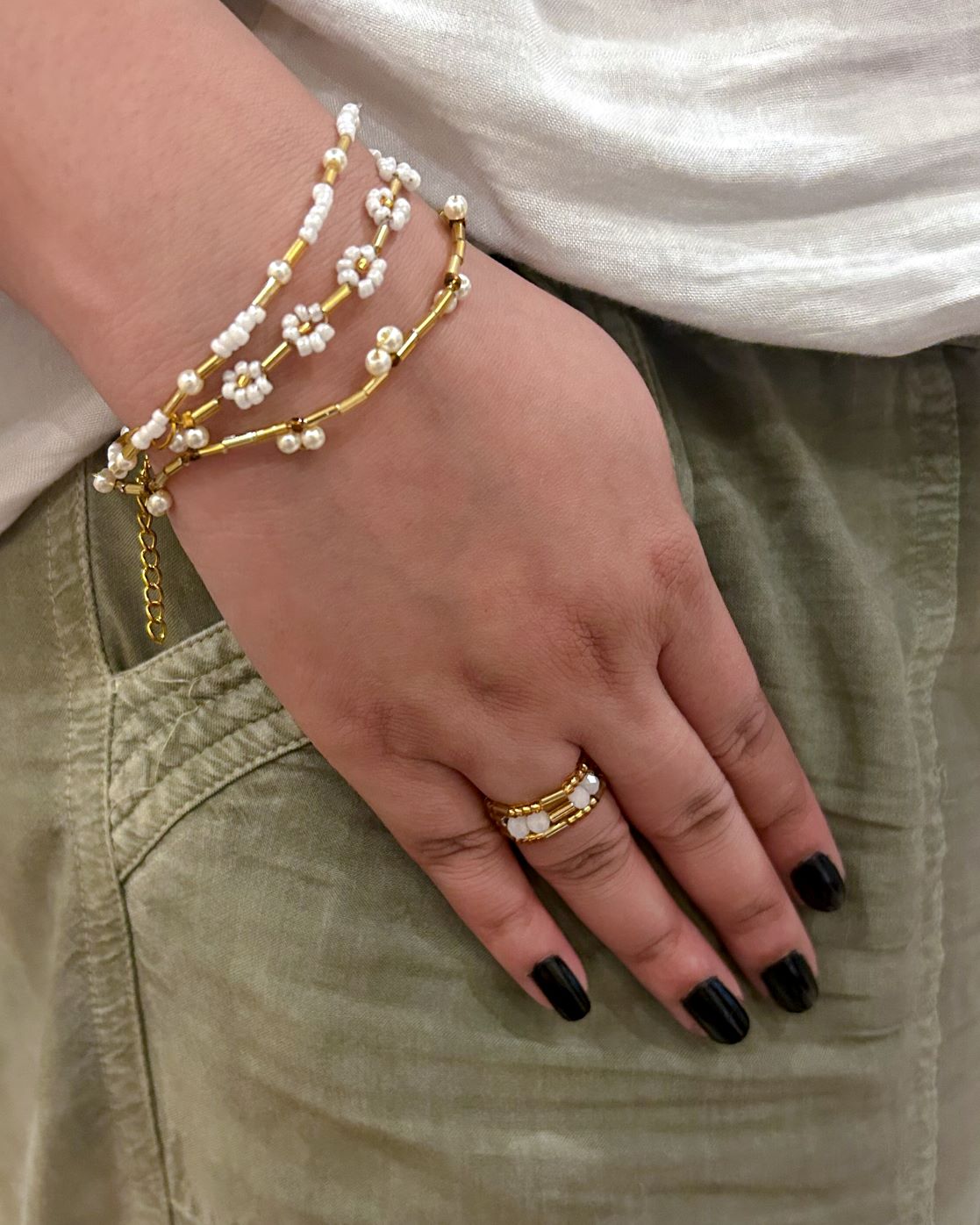 Shop now and embrace the enchantment of the White Blossoms Bead Bracelet and Ring Stack. Wear them together to create a mesmerizing arm party or mix and match with other pieces to suit your mood and style. Let nature’s beauty and elegance shine through in this handcrafted stack that celebrates the essence of femininity. 🌼✨ #WhiteBlossomsStack #HandcraftedBeadBracelets #NatureInspiredElegance