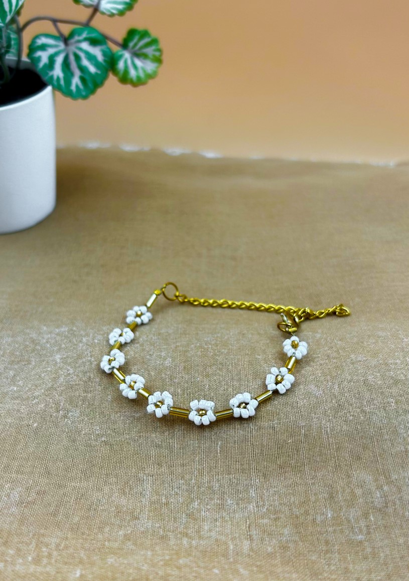 - A cute white daisy bead bracelet (lobster clasp-adjustable),