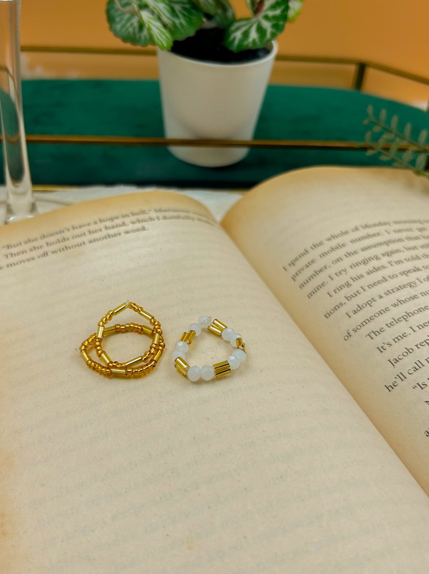 But that’s not all! The White Blossoms Bead Bracelet and Ring Stack also come with dainty golden rings and a white crystal ring. These rings add an extra touch of delicacy and beauty to the ensemble, mirroring the elegance and charm of the bracelets.