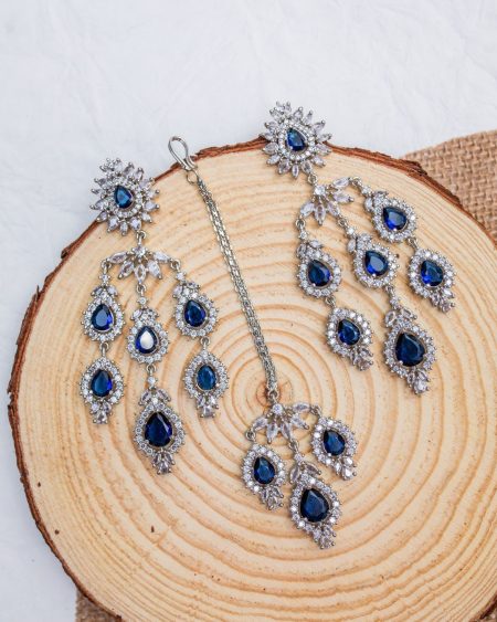 Roshan AD Stone Overlay Necklace Set – Blue