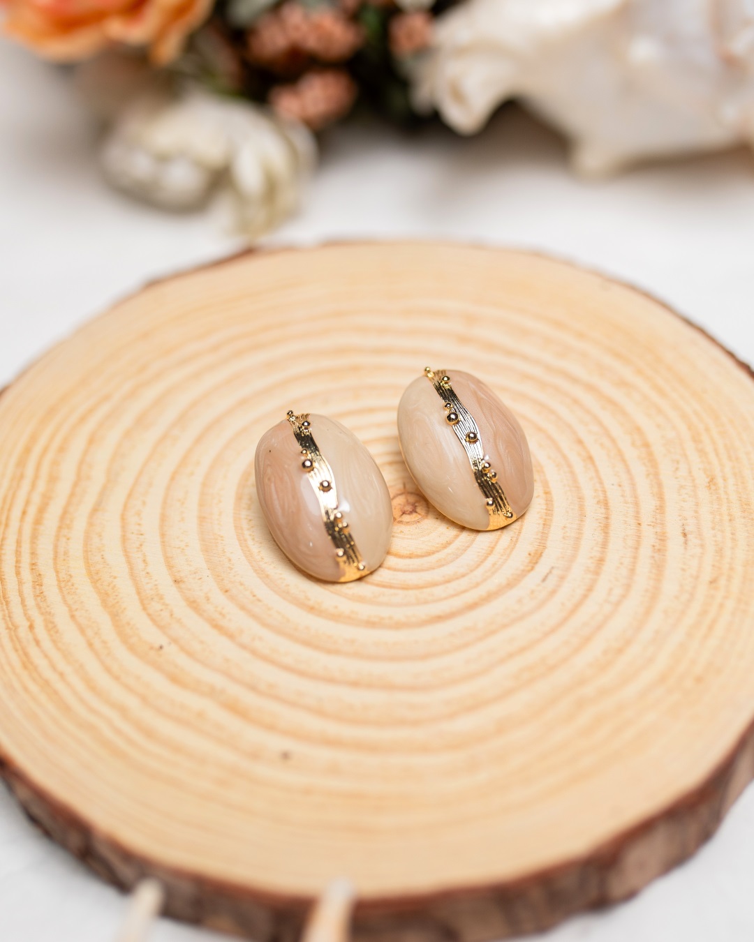 Look sophisticated and stylish with our Bianca earrings. Featuring an elegant blend of beige tones, accented with a refined gold stripe, they add a touch of class to any outfit. Perfect for the office, a business lunch or a casual day out, these earrings are designed for the modern woman who values style, elegance and sophistication.