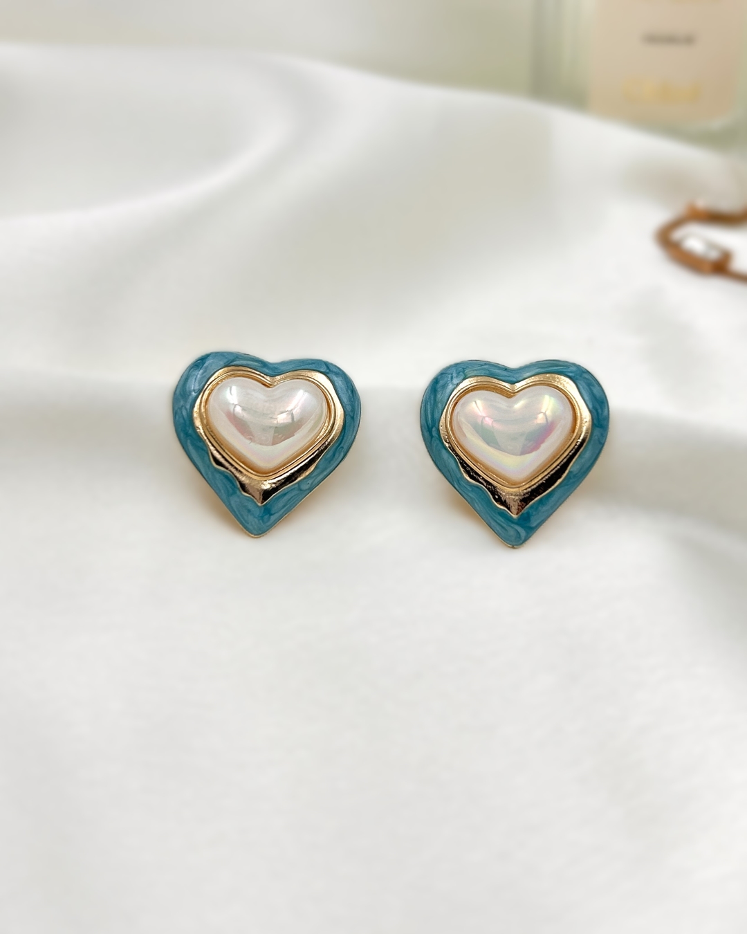 These heart-shaped Hannah stud earrings are an absolute must-have! Featuring a cool blue base with a chic, iridescent pearl heart at the center, they add the perfect touch of edginess to any outfit. Rock these trendy earrings for an effortlessly cool and stylish look that stands out. Ideal for casual hangouts, parties, or even sprucing up your everyday style. Get ready to turn heads with these unique and fashionable studs!