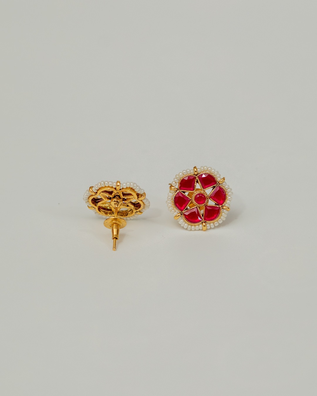 Our Rahat studs are classy, simple and stylish and can be worn with literally anything, be it your office wear, festive wear or even wedding ceremony outfits. They have kundan studded in a floral setting with a monalisa centre stone.