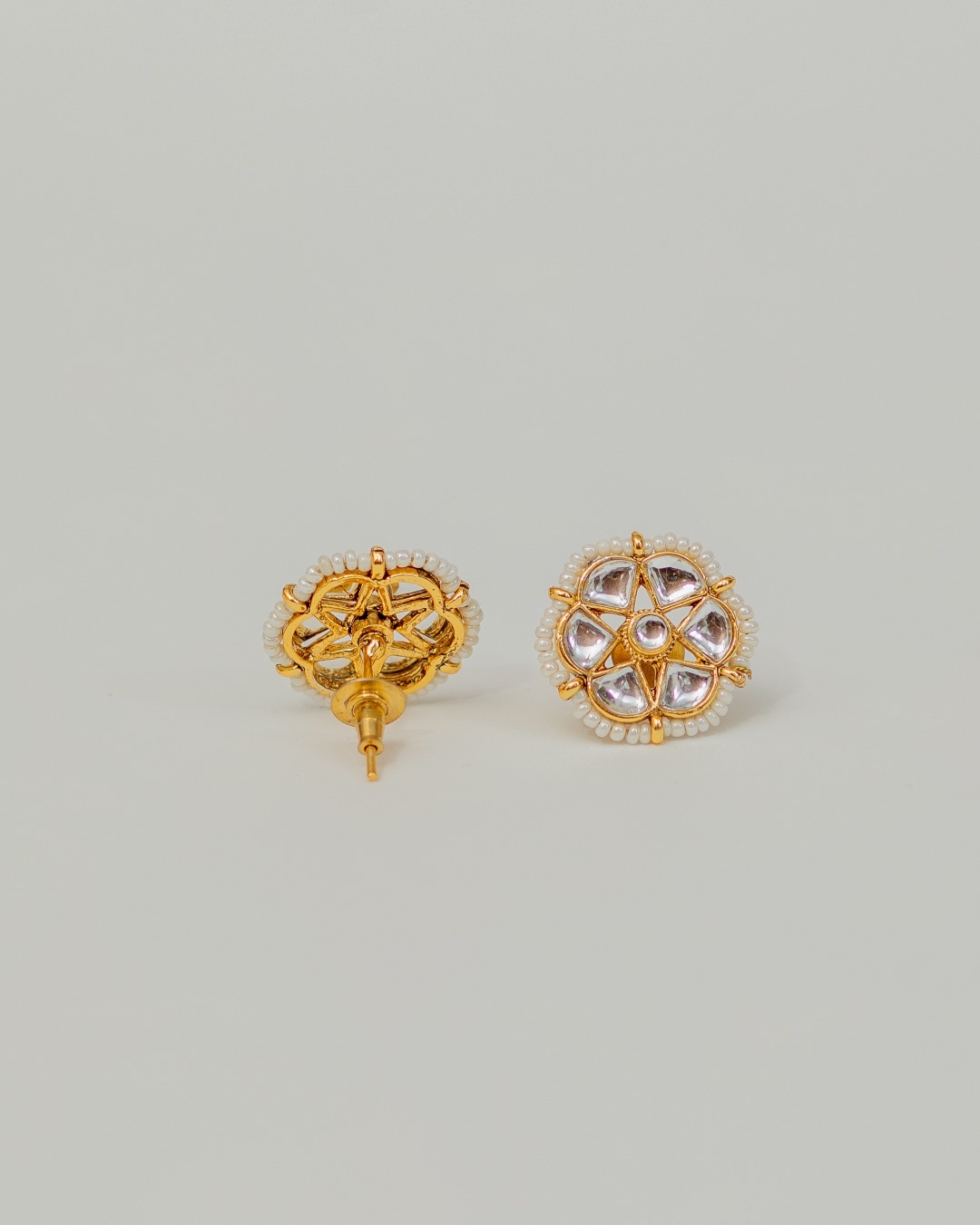 Our Rahat studs are classy, simple and stylish and can be worn with literally anything, be it your office wear, festive wear or even wedding ceremony outfits. They have kundan studded in a floral setting with a monalisa centre stone.