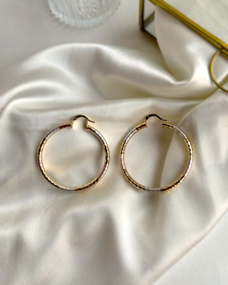 Textured Elegance in Every Turn, that’s Katy Mixed Metal Hoops for you! Featuring a chic hammered texture and a subtle blend of rose gold, silver, and classic gold polish, these lightweight statement earrings are the perfect balance of modern flair and timeless shine. Crafted in anti-tarnish stainless steel, they’re hypoallergenic, durable, and designed for effortless all-day wear. From casual brunches to date-night glam, these hoops bring a soft shimmer that compliments every skin tone and outfit.