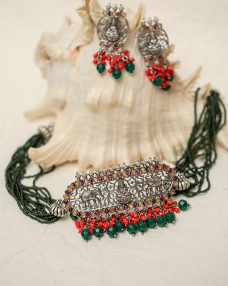 Style Tip: Style this magnificent necklace with Cotton or Chiffon sarees with silver zari work or with plain khadi cotton dresses/blazers, and wow the world!