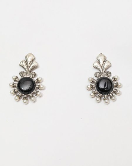 Our Palak Earrings are tailored for the pro-minimalists who appreciate the beauty of traditional jewelry without compromising on simplicity. At the heart of the Palak Earrings is a black monalisa stone that sits delicately underneath a charming leaf design. The round Monalisa stone, like a luminescent gem, adds a touch of radiance to the earrings and is outlined by lustrous pearls, while the leaf design imparts a sense of organic beauty. The simplicity of the design ensures that these earrings can effortlessly become your favorite accessory with just one glance.
