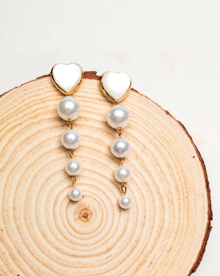 Check out these super cute earrings! With adorable enamelled heart-shaped tops and lustrous grey pearls, they’re the perfect mix of fun and chic. Whether you’re dressing up for a night out or just adding some flair to your everyday look, these earrings are a must-have. Get ready to slay with these stylish accessories!