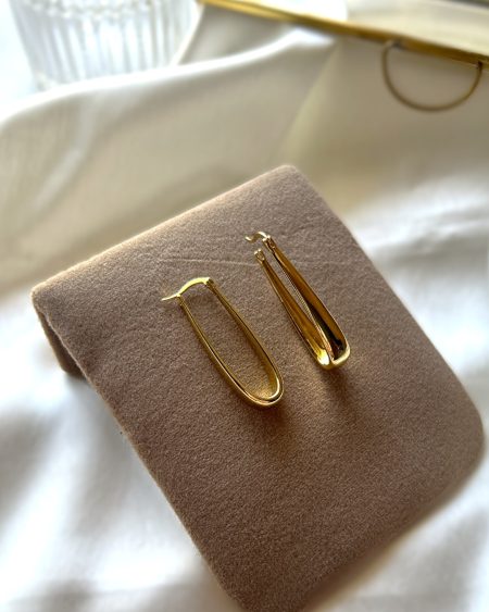 Sleek, sculpted, and effortlessly sophisticated — our Julia gold-finished elongated hoop earrings are the definition of minimalist luxury. Designed with a modern silhouette that tapers gracefully, they bring a touch of high-end glamour to your daily style. Crafted with an anti-tarnish finish to maintain their radiant gold sheen, these hoops are perfect for the discerning woman who values both durability and design. Their lightweight yet bold structure makes them ideal for transitioning from day-to-night — a versatile choice for jet-setting minimalists and power dressers alike.