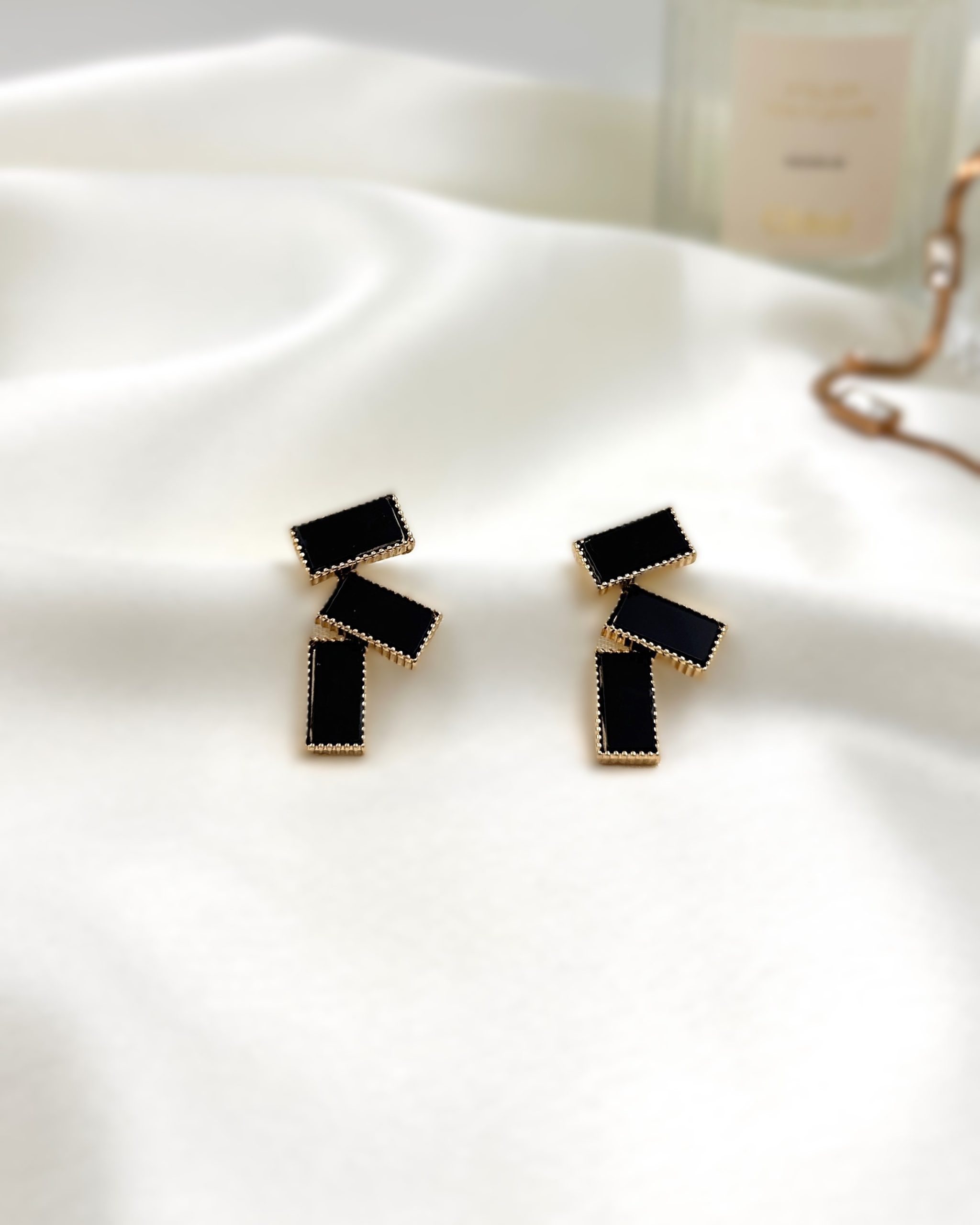 Elevate your work wardrobe with our sleek NYC Earrings! These modern beauties feature a cascading design of gold-edged black rectangles, perfectly balancing sophistication and trendiness. Ideal for the fashion-forward working women, they add a touch of chic elegance to any outfit, making you stand out in the boardroom or at after-work gatherings. Whether you’re heading to a meeting or a night out, these earrings are your go-to accessory for a polished and stylish look. Don’t miss out on the chance to make a bold statement at your workplace – grab yours now and redefine office chic!