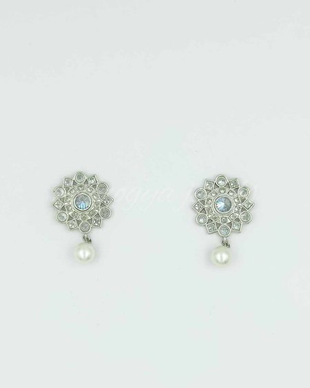 Our Noorani earrings feature lustrous diamonds which are studded in a reverse setting to give an edge and reflect light, making it a sparkly affair. These elegant earrings feature rhodium plating and a pretty pearl droplet that elevates the entire look of the wearer.