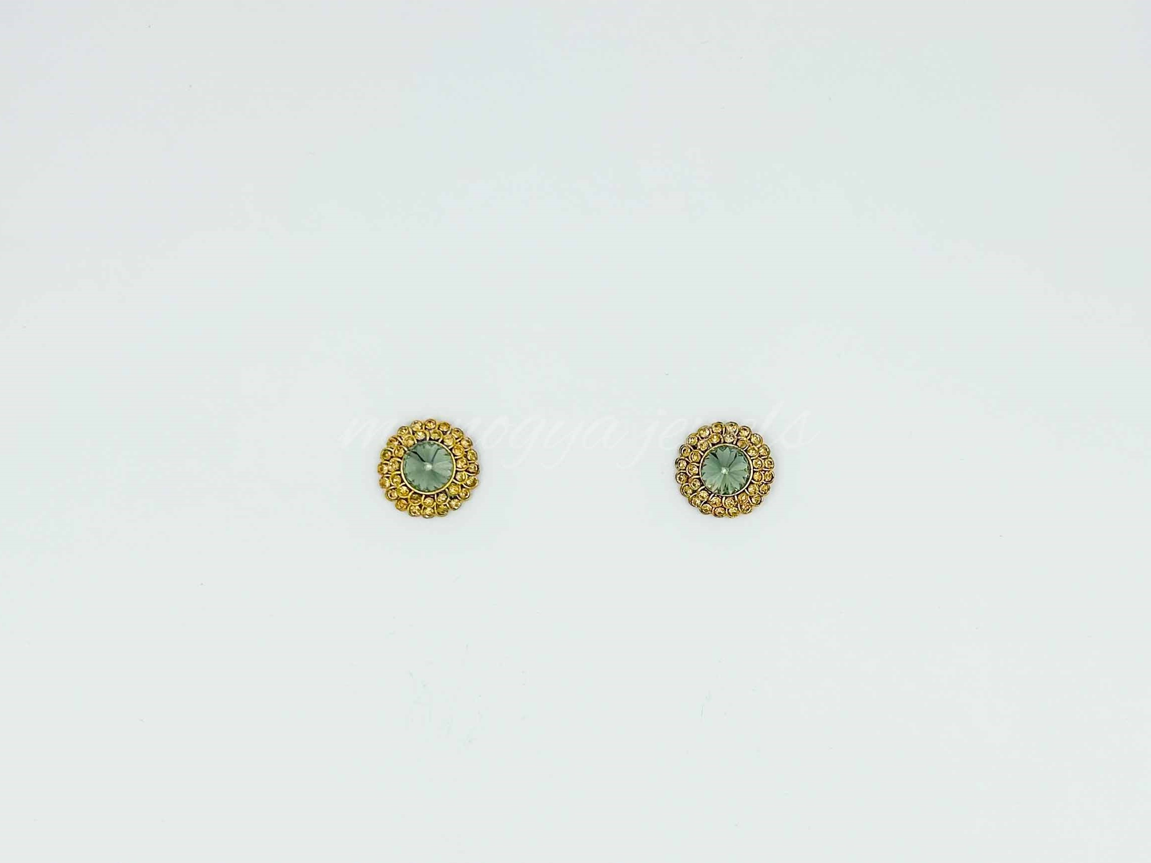 Raha earrings are a beautiful amalgamation of champagne-coloured and grey diamonds. Tiny champagne-coloured diamonds surround the grey diamond in the center, creating a flower-like aesthetic. These minimal diamond studs will add a subtle sparkly charm to your elegant, everyday look.