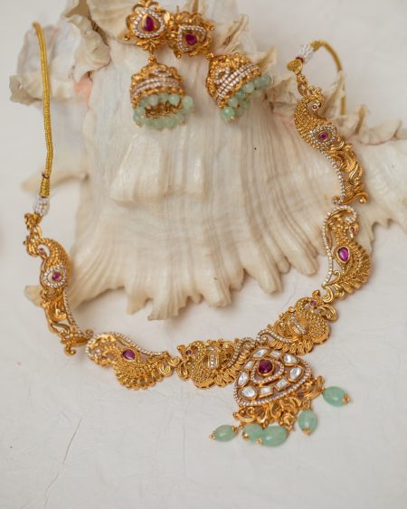 Invest in the beauty and luxury of the Adhisha necklace set, and experience the joy and satisfaction of owning a true masterpiece. This set is the perfect embodiment of timeless charm and modern sensibility, and is sure to be a treasured addition to your jewelry collection for years to come.