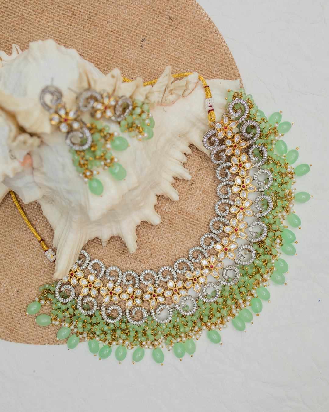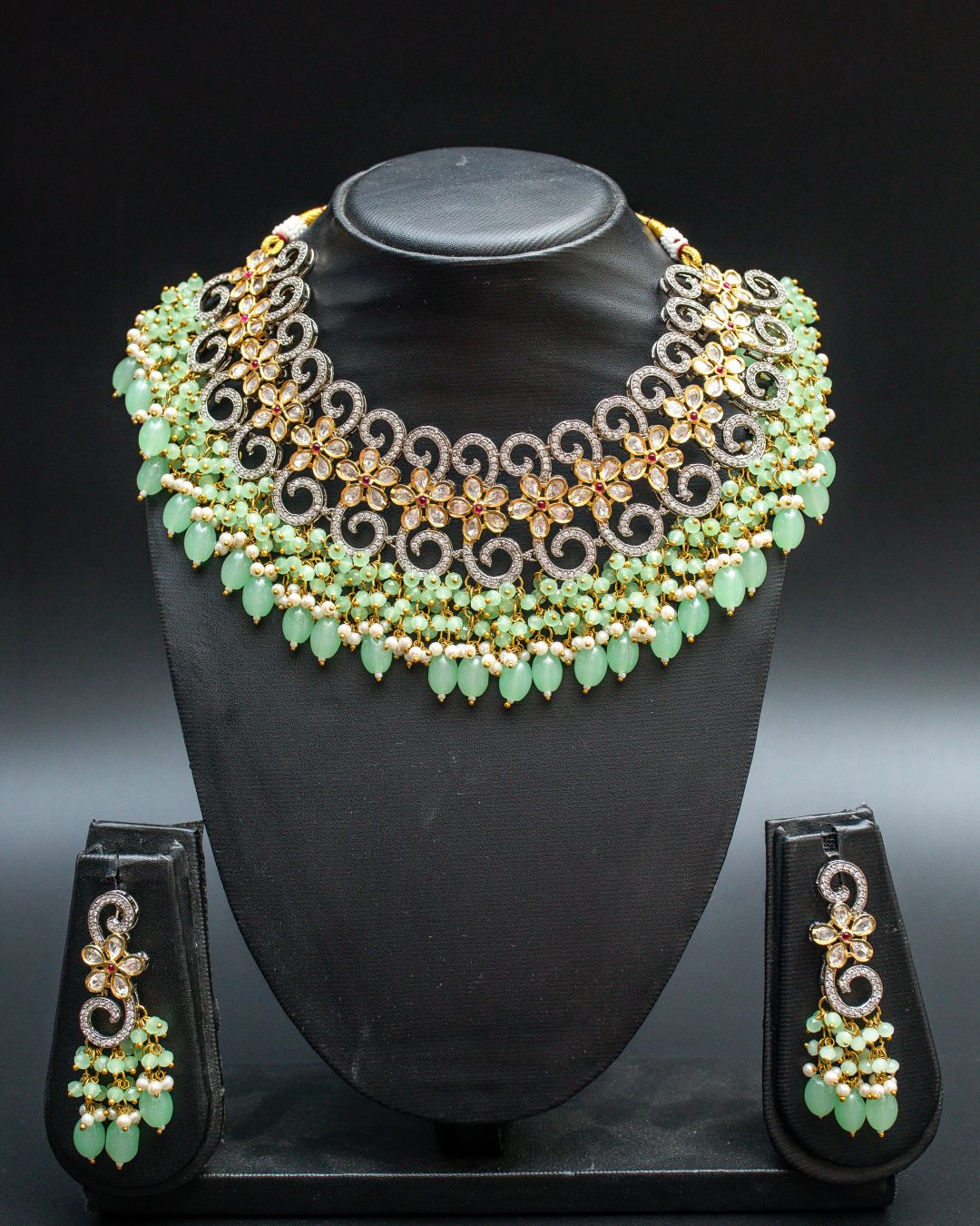 Aishwarya Polki Kundan Necklace Set – Seagreen