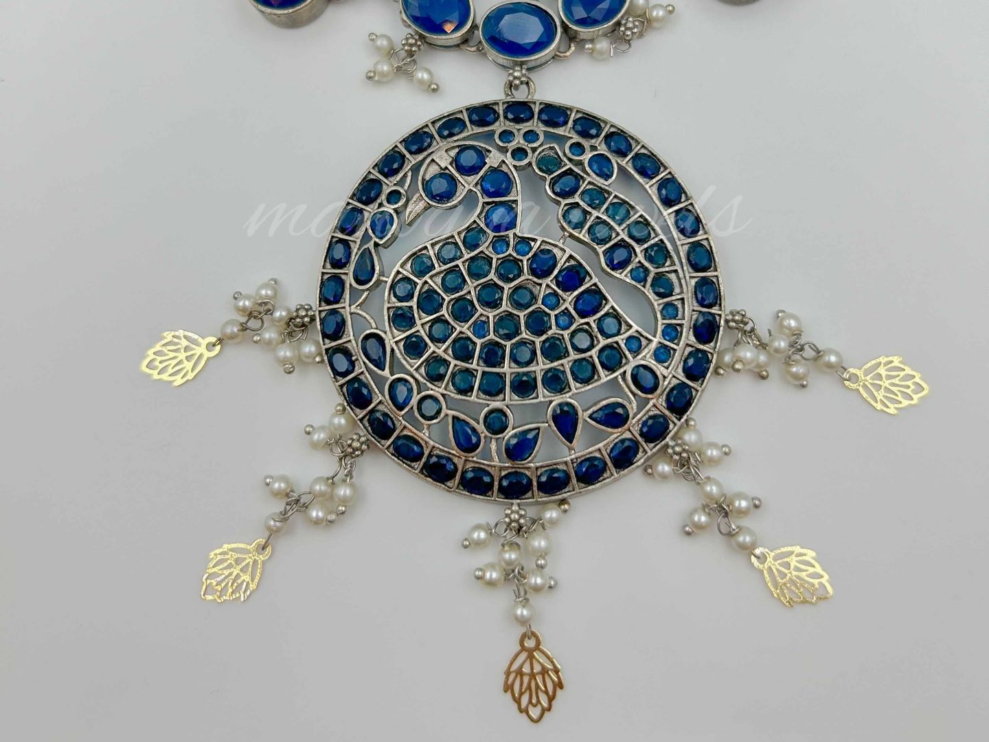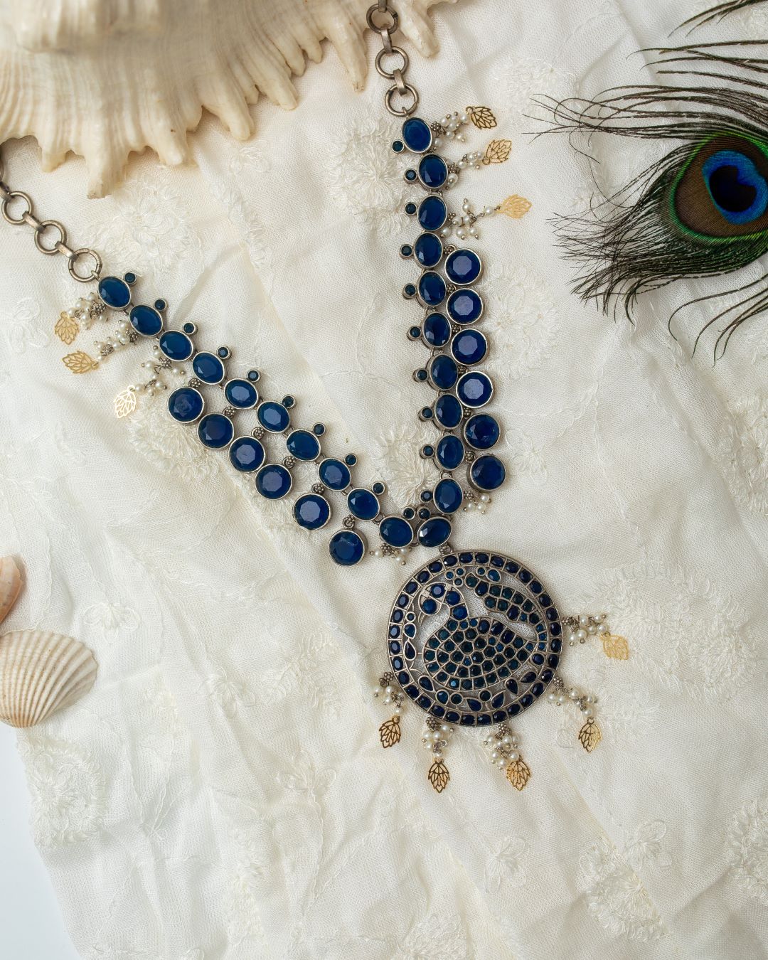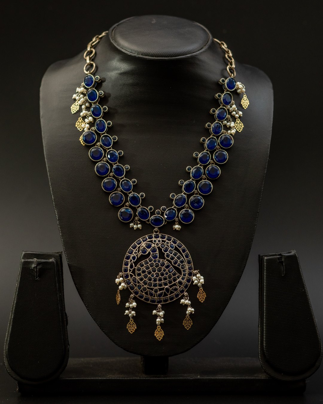 Anisha Stone Necklace with Peacock Motif – Dark Blue