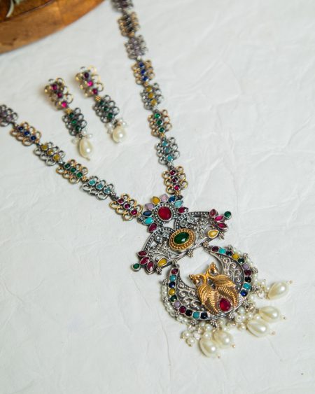 Style Tip: Style this magnificent necklace with Cotton or Chiffon sarees with silver zari work or with plain khadi cotton dresses/blazers, and wow the world!