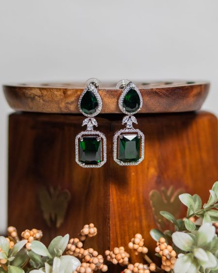 Meet Ashley, an exquisite jewelry piece that exudes elegance and sophistication. This stunning necklace showcases a string of vibrant green stones accented by delicate CZ stones, adding a touch of sparkle and glamour. Featuring a mix of rectangular and cushion-cut stones, Ashley offers a unique and edgy aesthetic. Complete with a pair of matching green Diamond drop earrings, this set is perfect for adding a pop of color and style to any ensemble.