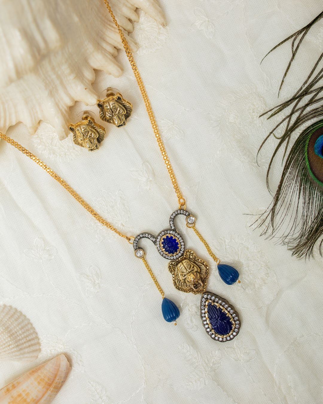 Shaurya Lion Pendant Set – Blue