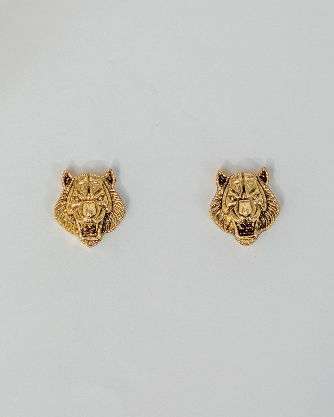 Completing this ensemble are the Lion Head Earrings, a statement piece in their own right. These earrings are a perfect complement to the pendant, mirroring its design elements and adding a touch of regal charm to your overall look.