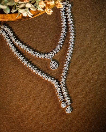 For the connoisseur of artisanal jewels, this is not just a ring—it’s a legacy in the making. A Statement in Elegance. A true celebration of artisanal luxury. Crafted to perfection, our Anvesha Moissanite Cocktail Ring is a statement piece featuring luminous moissanite solitaires, precision-set within a regal, rhombus-shaped silhouette. Each gem is surrounded by a halo of intricate micro pave detailing, adding depth, fire, and unmatched brilliance. The rich play of blush pink and pastel blue hues, geometrical silhouette and luxurious moissanite details makes this ring an instant heirloom—refined enough to speak of tradition, yet bold enough to command attention at every soirée. Whether styled with an opulent sari, an evening gown, or a classic black blazer, Anvesha is the kind of jewel that turns admiration into conversation.