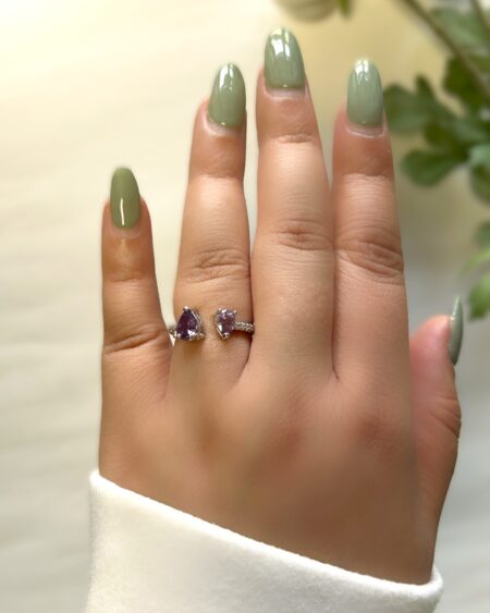 Elevate your style story with our Jisoo dual-stone ring — a masterpiece of feminine allure and contemporary elegance. Set in a luxe pavé band, two purple-hued teardrop crystals sparkle like dew-kissed lavenders at dawn, delicately poised in a graceful open design. The shimmering stones catch the light with every gesture, making it a subtle yet striking statement of modern romance. Whether styled solo or stacked, this ring whispers sophistication and speaks volumes of your sartorial sensibility. A must-have jewel for the woman who curates her accessories like art.