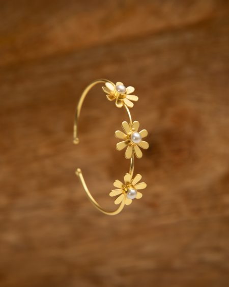 First thing that anyone would notice in this exquisite neckpiece is the huge stone in the centre that just sets the vibe right for this boho choker. The stone is accompanied by peacock motifs and outlined by pearl droplets. It comes with earrings that also feature the beautiful peacock motif and pearl details.