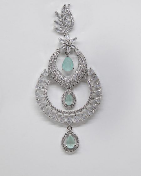 Dazzling diamonds come together to create our marvellous Varini earrings. Varini earrings feature three tiers of luxurious diamonds set in a variety of pattern that give these earrings a touch of opulence and uniqueness. The earrings start with a diamond-studded floral bloom motif that merges with a leaf-like motif set with sparkling little rhinestones. The third tier of these earrings features bold pear-shaped diamonds placed along a stone-studded ring, creating a distinctive pattern. Three mint green stones add a touch of colour to this cool-tone earring which is fit for any elegant occasion that needs you to have a stylish yet elegant look!